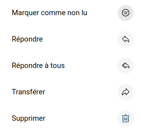 Ces actions sont aussi disponibles lors du clic droit sur un message