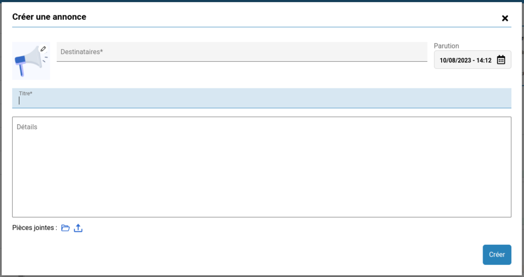 Les annonces sont publiées par la direction de l’établissement, à destination d’une ou plusieurs populations de l’établissement.