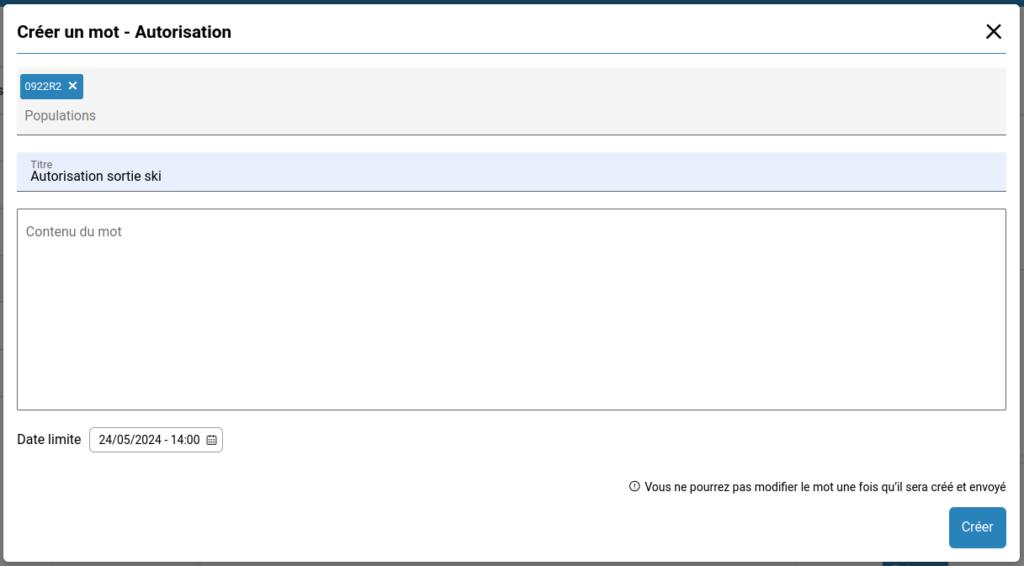 La spécificité des demandes d’autorisation sont qu’elles demandent en plus une date limite de signature, initialisée par défaut à la fin de l’année scolaire en cours.