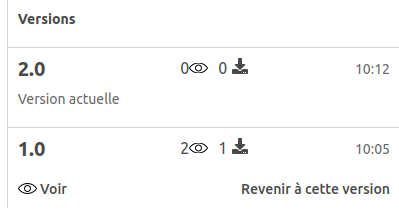 Cliquer sur le bouton ‘Revenir à cette version’ crée une nouvelle version majeure avec le contenu de la version restaurée.