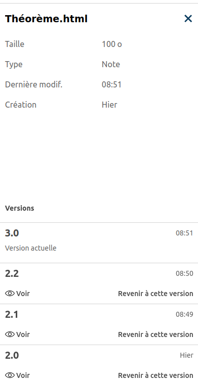 Cliquer sur le bouton ‘Voir’ d’une version antérieure ouvre la version du fichier en question, en mode consultation uniquement.