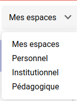 Le bouton Nouveau permet de créer un espace personnel. Voir section ‘Créer un espace’.