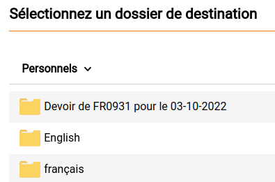 permet de déposer le fichier dans Mes documents de l’ENTA. Une fenêtre de sélection de dossier de destination s’ouvre: