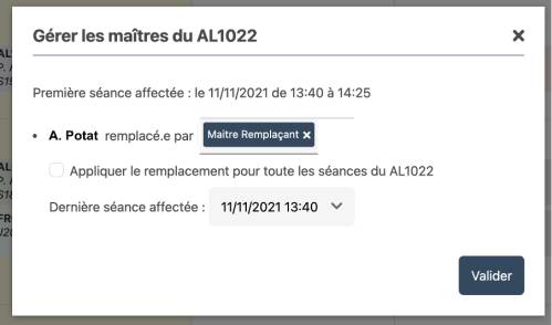 Cliquez sur le bouton « Valider » pour confirmer la suppression du remplacement.